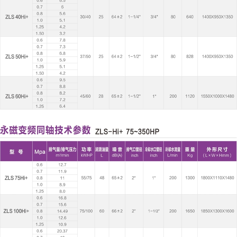 優化機頭配比造就大排量: 由于通過長期嚴謹的理論研究和大量的型式試驗,為機頭配比和設計的優化奠定了堅實的技術基礎。ZLS-Hi+空壓機系列產品采用優化的機頭配比與系統設計,排氣量比同等功率壓縮機高10%。
