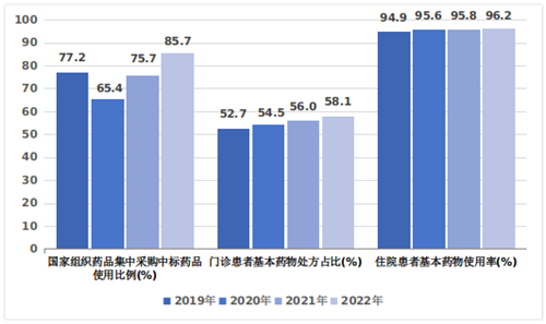 圖4?2019-2022年三級公立醫(yī)院合理用藥情況
