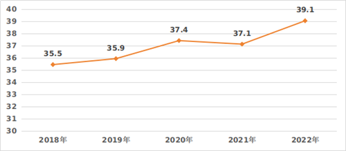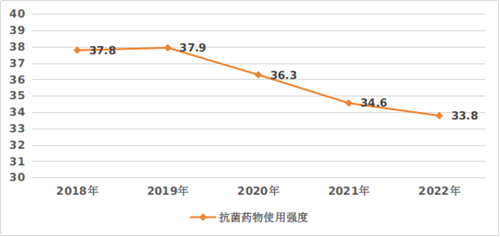 圖3?2018-2022年三級公立醫(yī)院抗菌藥物使用強(qiáng)度情況