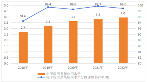 圖6?2018-2022年三級公立醫(yī)院電子病歷系統(tǒng)應(yīng)用水平分級評價(jià)情況