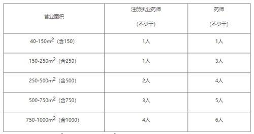 營業面積超過1000m2的,每當增加250m2,至少應增加注冊執業藥師和藥師各1名。